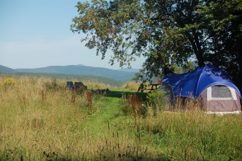 Enjoy shade from cherry and maple trees at site 10. Located on the edge of our big Alpine pasture, you’ll enjoy with great views of the Missisquoi river valley and its beautiful, cloud-filled sunrises.